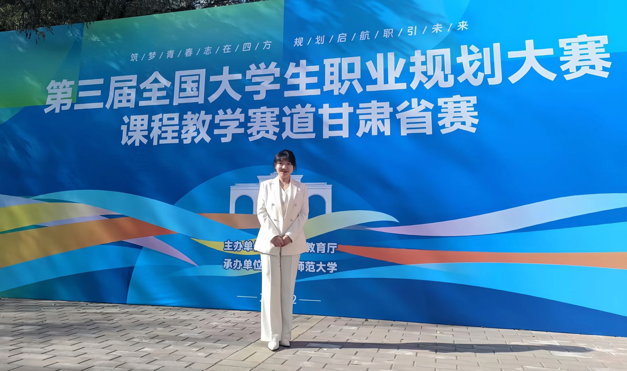 备赛期间,兰州信息科技学院商学院及课程团队给予徐兴宇老师全方位支持,多维度打磨课程方案。徐兴宇老师紧扣当代大学生生涯发展核心需求,深耕职业规划课程教学实践,将理论知识与行业实际、学生求职痛点紧密结合,构建了兼具思想性、专业性与实践性的课程体系。比赛现场,她以清晰的逻辑、生动的表达完成课程建设汇报与教学展示,在互动答辩环节从容回应评审提问,展现出扎实的教学素养与创新的育人思路,赢得了评审专家的一致认可。