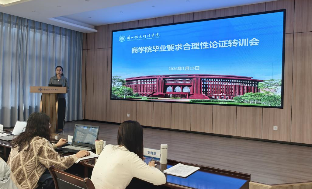 为深入落实学校关于专业建设及教学改革的重要工作部署,将“围绕学生职业成就和人生幸福的专业毕业要求合理性有效提升”的年关键指标落到实处,切实提升专业人才培养质量,推动专业毕业要求与行业需求、学生发展精准对接,1月15日上午,商学院在创新创业学院路演厅组织召开毕业要求合理性论证专题转训会。会议由商学院副院长韩昕玘主持,商学院院长冯煜、各系主任、副主任及专业负责人出席,全体教师参加。转训由财务管理系系主任、财务管理专业负责人田佳主讲,全程围绕毕业要求合理性论证工作的核心要点、实操方法及落地路径展开深入学习与研讨。