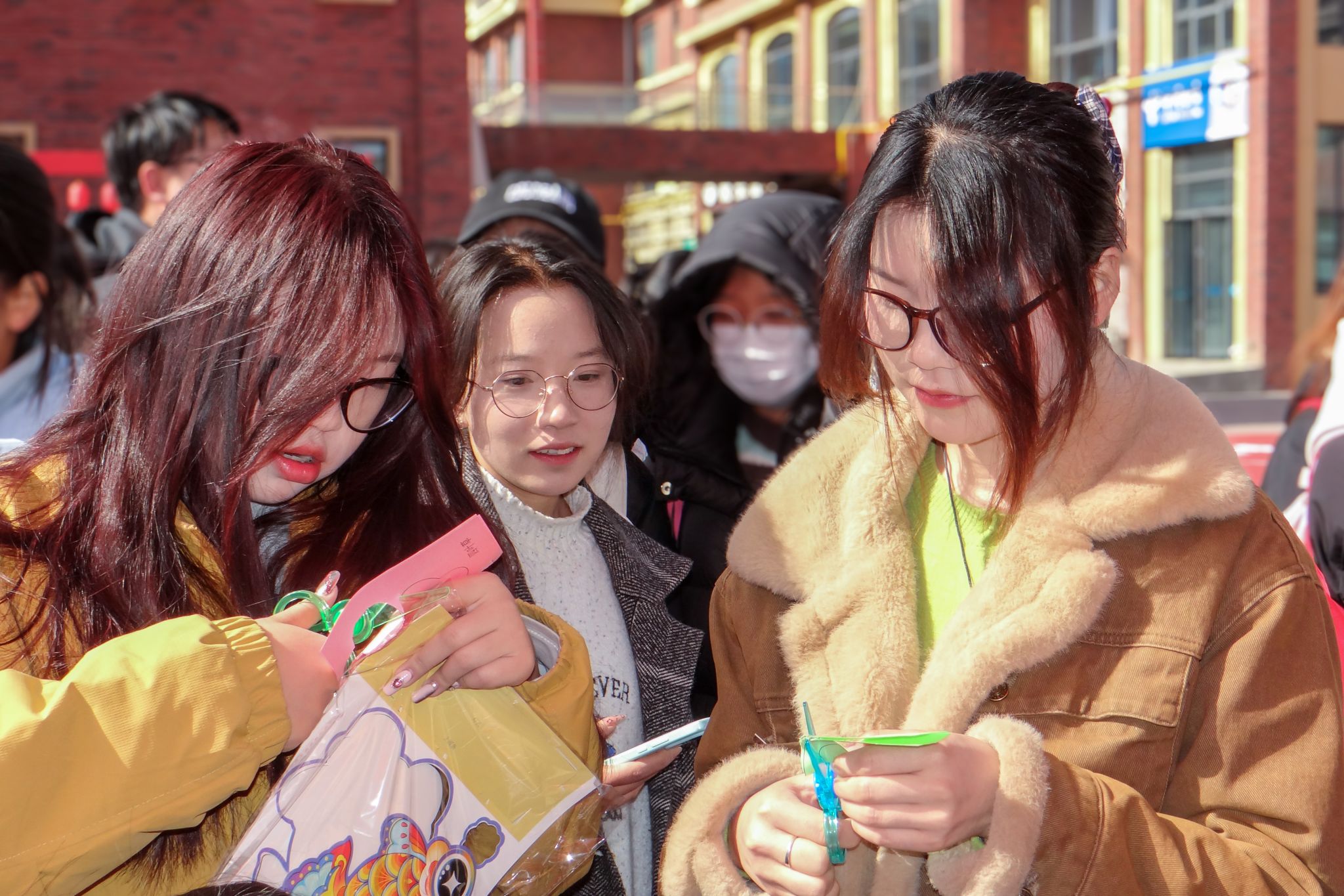 在场同学或手持剪刀与彩纸,巧手翻飞间感受非遗文化的魅力;或凝神聚力、全神贯注,长篇书写一气呵成;或摩拳擦掌,在力量比拼中增进彼此的友谊。