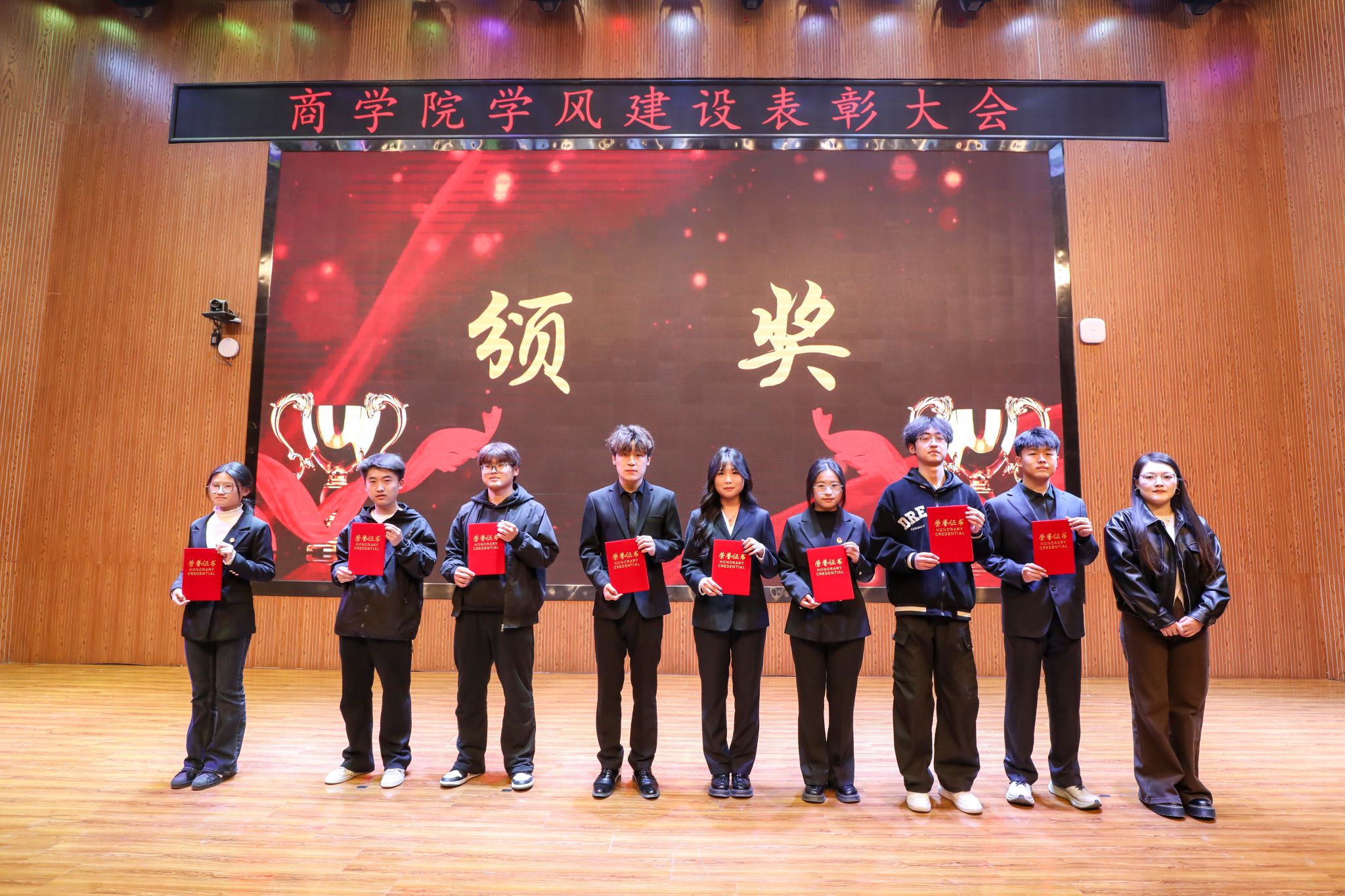 学生发展中心副主任王世斌在总结中强调,本次表彰不仅是荣誉的授予,更是为全体学生提供的“成长加油站”。他鼓励大家珍惜校园时光,锤炼真实本领,努力成为“能扛事、会发光”的复合型商科人才,为应对未来挑战夯实基础。