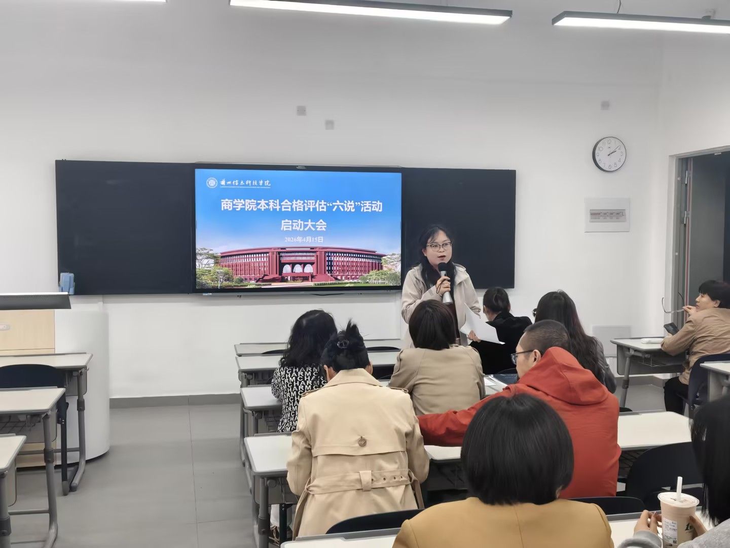 为全面落实学校本科教学合格评估工作部署,深入践行“以评促建、以评促强” 工作要求,近日,商学院召开本科教学合格评估 “六说” 活动启动会。会议由副院长韩昕玘主持并作专项工作部署,全体教职工参会,此次会议的召开,正式拉开我院 “六说” 全员练兵工作序幕。