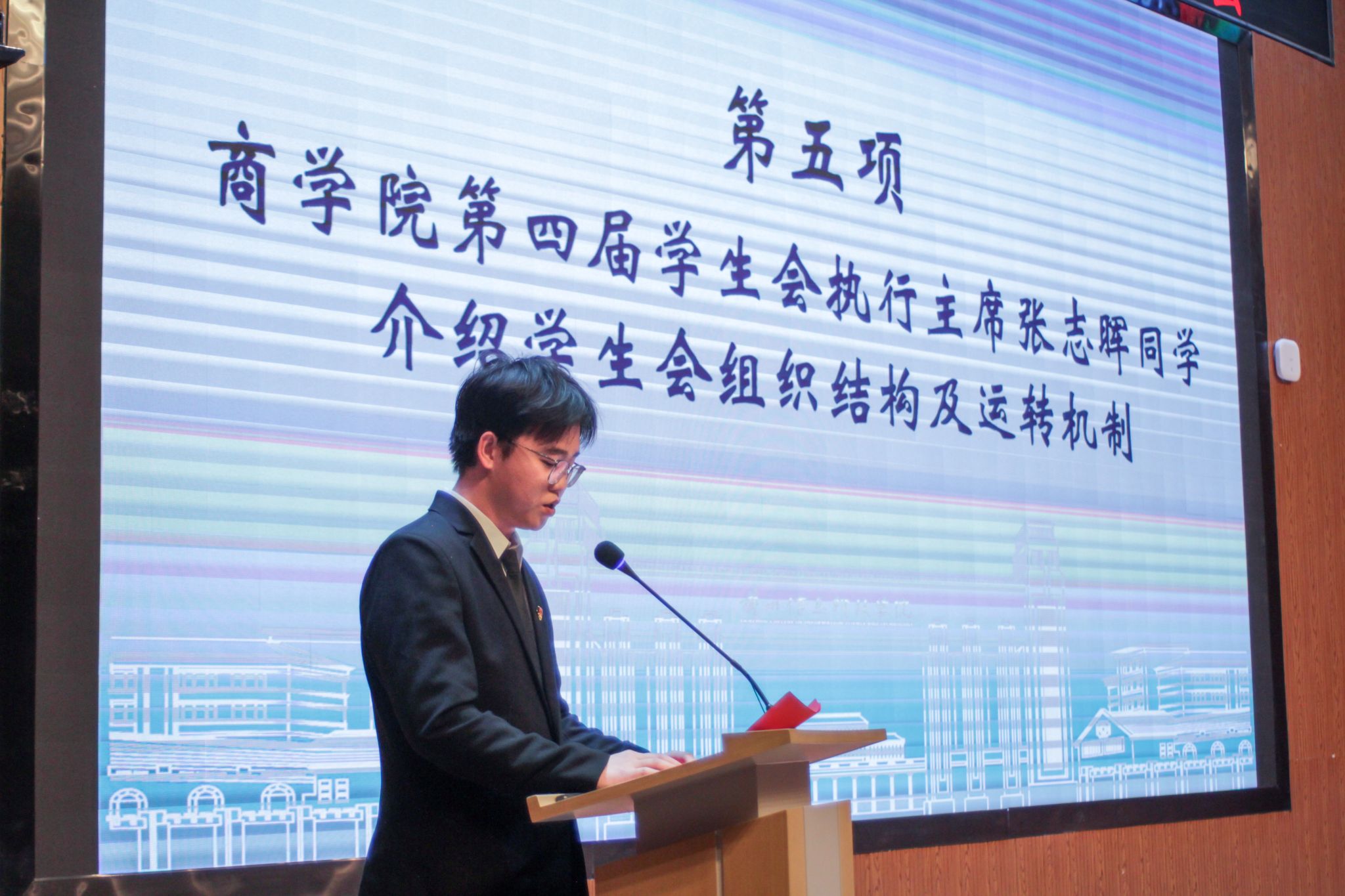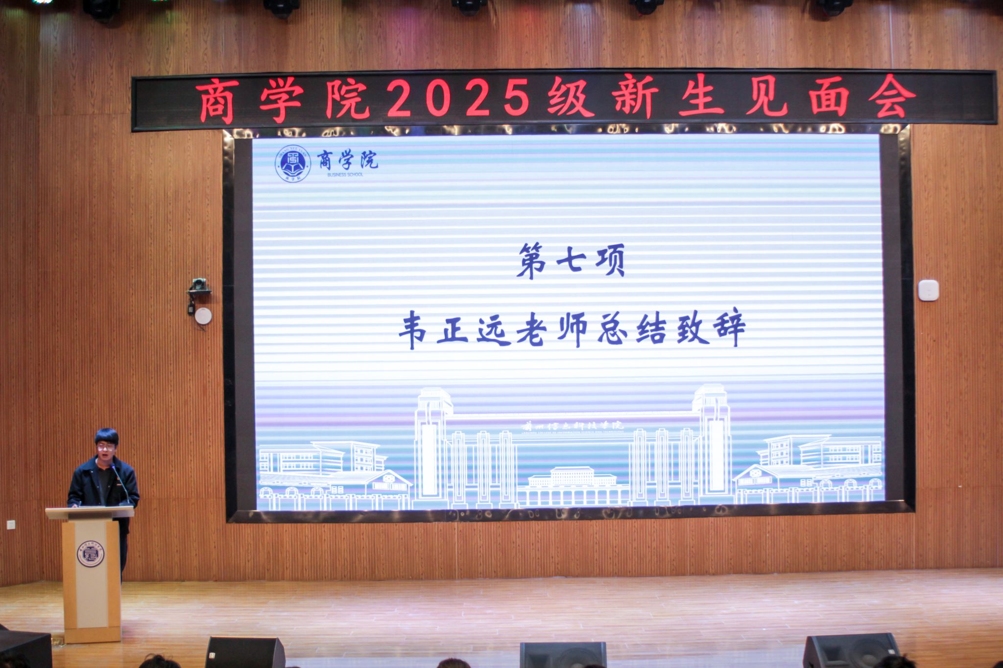 他寄语全体新生:“团学组织是大学成长的重要舞台,希望大家主动融入,在团总支中筑牢思想根基、坚定理想信念,在学生会中锤炼服务本领、提升综合能力,以奋斗之姿扎根商院,书写无悔青春答卷。”