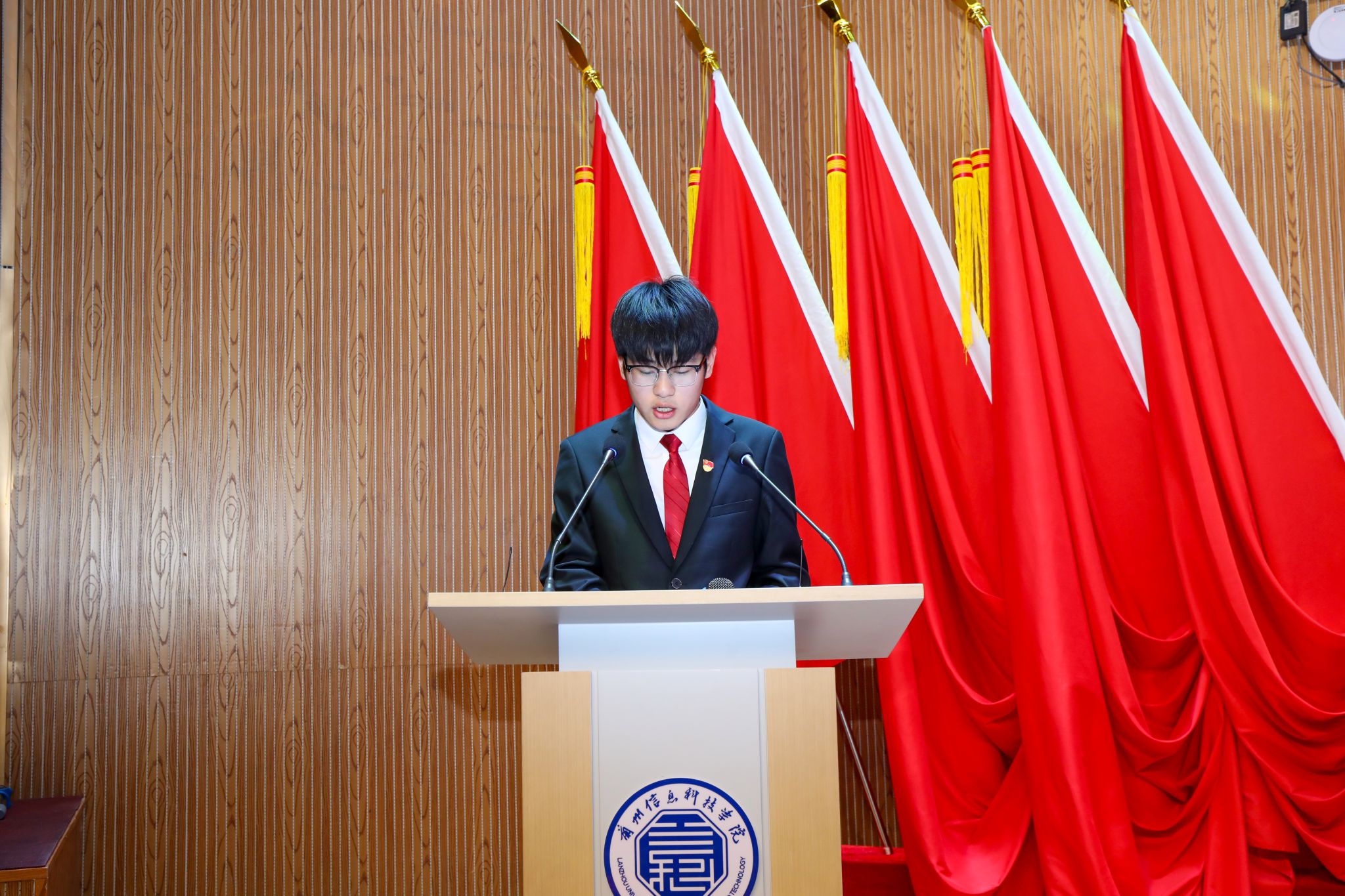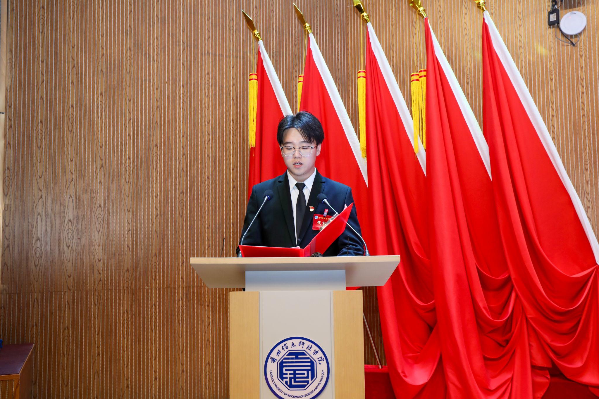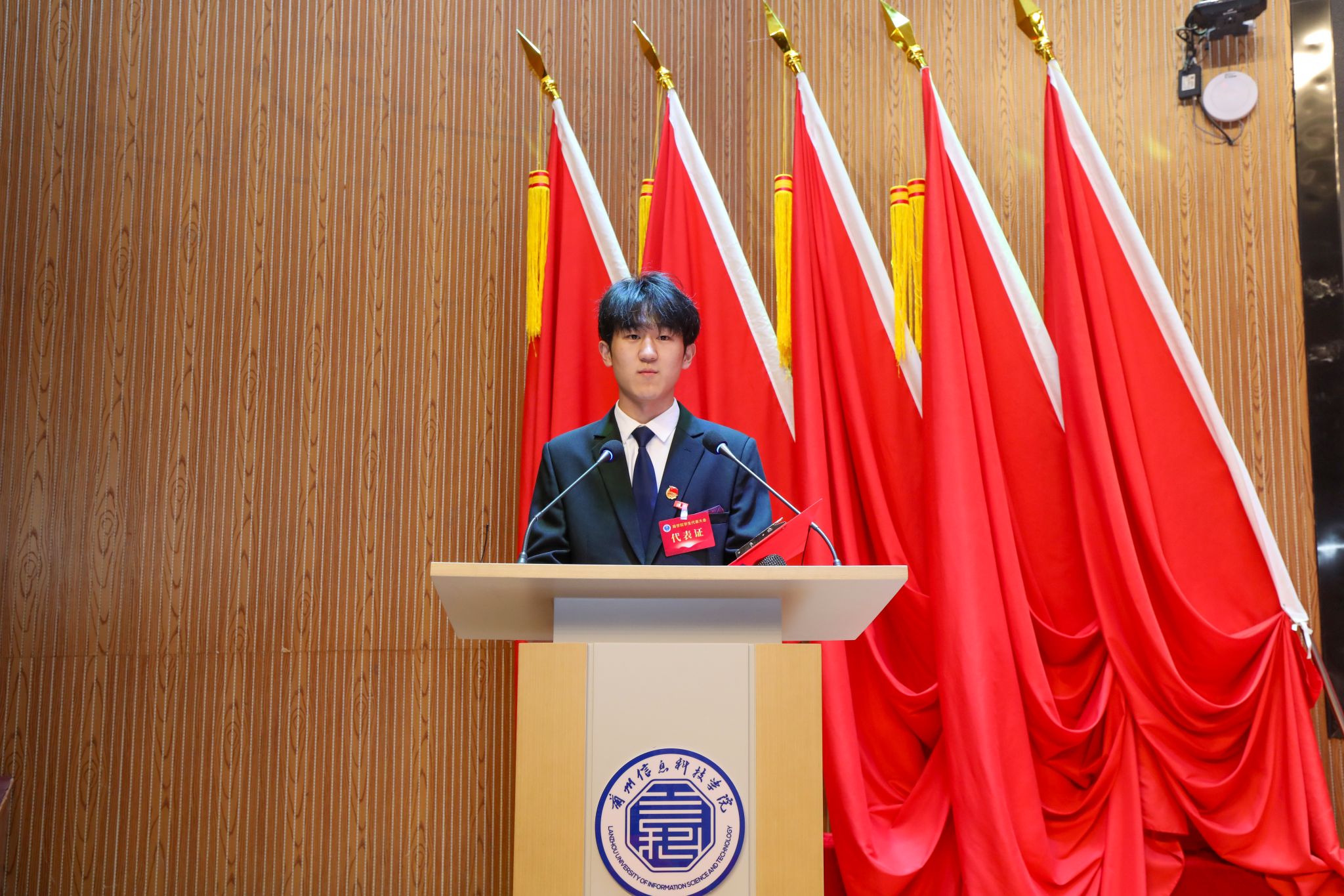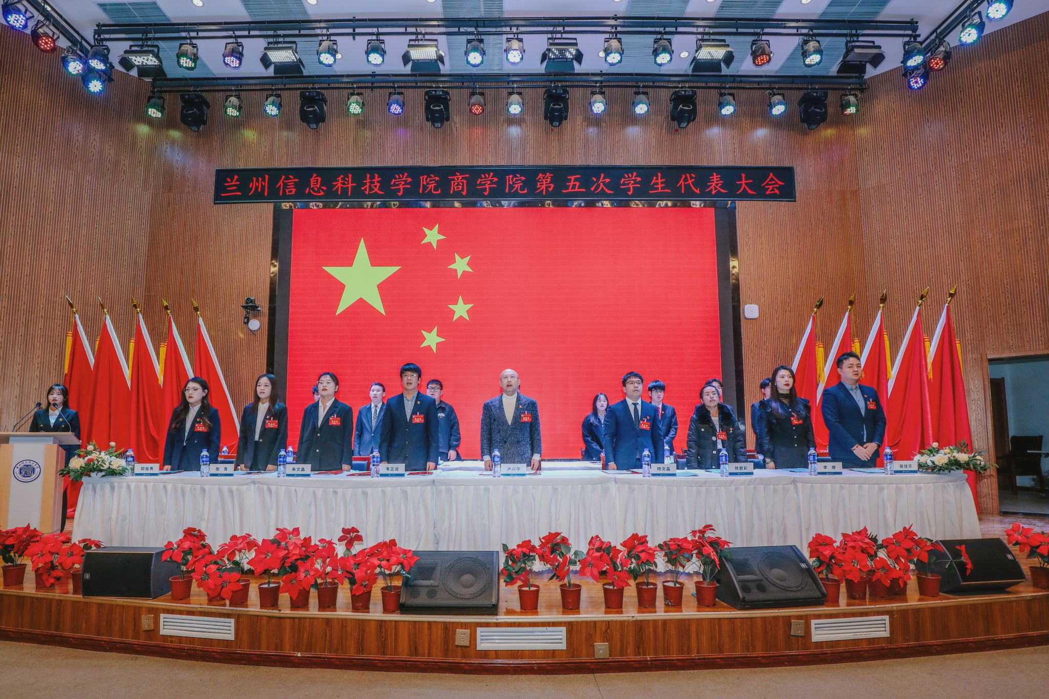 为系统总结学生组织工作成效、夯实服务同学核心根基、选拔培育优秀学生骨干队伍,2025年12月5日17:00,兰州信息科技学院商学院第五次学生代表大会在二号报告厅隆重举行。学校党委学生工作部副部长、校团委书记卢兴华,商学院党委书记杨文晶,团总支书记韦正远,全体辅导员,兄弟学院主席团代表及300余名学生代表齐聚现场,共商学生工作新篇,共绘青春奋斗蓝图。